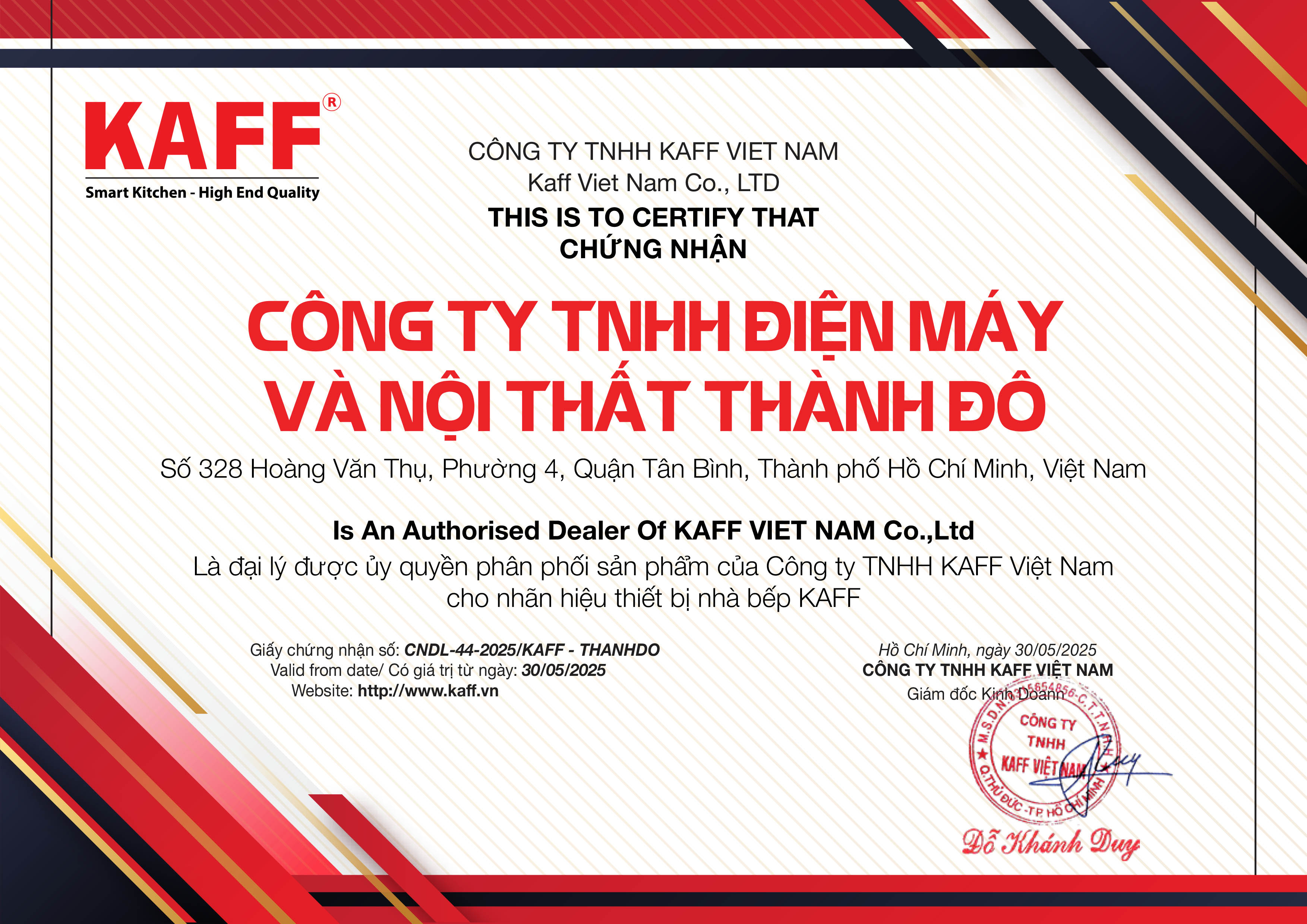 CHỨNG NHẬN ĐẠI LÝ CỦA THÀNH ĐÔ